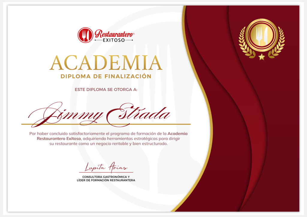 • Una insignia oficial de la Academia Restaurantero Exitoso, utilizable en su sitio web, firma de correo o perfil profesional.
